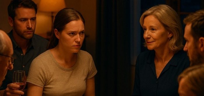 Ήταν ένα δείπνο για τον εορτασμό της επετείου. Μεγάλη οικογένεια, κεριά, κρασί, γέλια. Η Εμίλια ένιωθε σαν να βρισκόταν στο χείλος του γκρεμού — σαν να ήταν δική