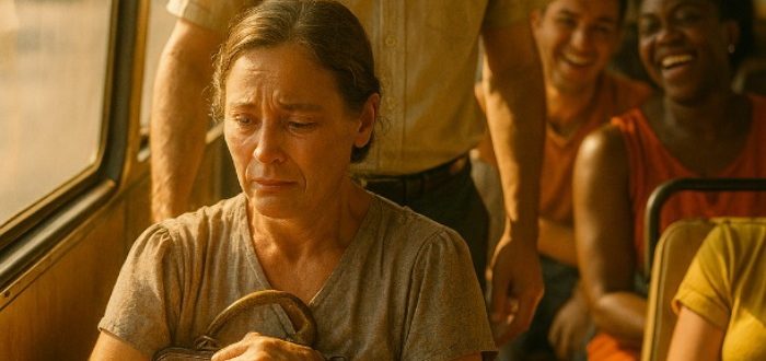 Ένα ζεστό καλοκαιρινό πρωινό κάλυπτε την πόλη. Το λεωφορείο προχωρούσε αργά στους δρόμους, ο αέρας ήταν πυκνός και αποπνικτικός, και ο ήλιος πλημμύριζε το σαλόνι με χρυσές ακτίνες.
