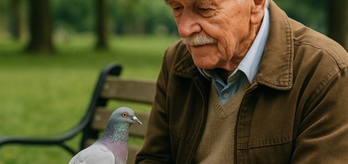 Σε ένα παλιό παγκάκι κοντά στο σιντριβάνι της πόλης καθόταν κάθε πρωί ένας άνδρας ονόματι Βίκτορ.Στα χέρια του – μια χάρτινη σακούλα με σιτάρι, στα μάτια του –