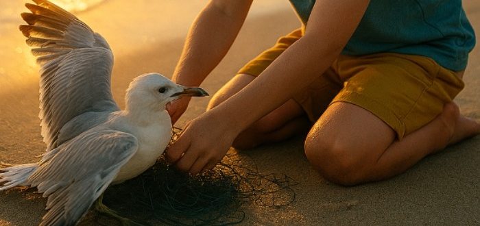 Ο Μίσα αγαπούσε τη θάλασσα.Κάθε πρωί έτρεχε στην ακτή πριν από όλους — ξυπόλητος, με κουβαδάκι και το χαρακτηριστικό του κίτρινο καπέλο.Μάζευε πετραδάκια, κοχύλια, έχτιζε κάστρα και έλεγε