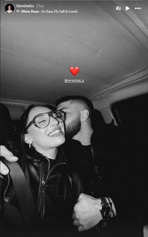Η Klavdia φαίνεται να βρίσκεται στην καλύτερη φάση της ζωής της, καθώς η νεαρή τραγουδίστρια δημοσίευσε την πρώτη της κοινή φωτογραφία με τον νέο της σύντροφο, Γιώργο Νερούτσο. Η ανάρτηση στον προσωπικό της λογαριασμό στο Instagram δείχνει τη χαρά και τον ενθουσιασμό της, με την τραγουδίστρια να ποζάρει αγκαλιά με τον αγαπημένο της. Η κόκκινη καρδιά στη λεζάντα συνοδεύει τη φωτογραφία, αποκαλύπτοντας διακριτικά το νέο κεφάλαιο στη ζωή της.